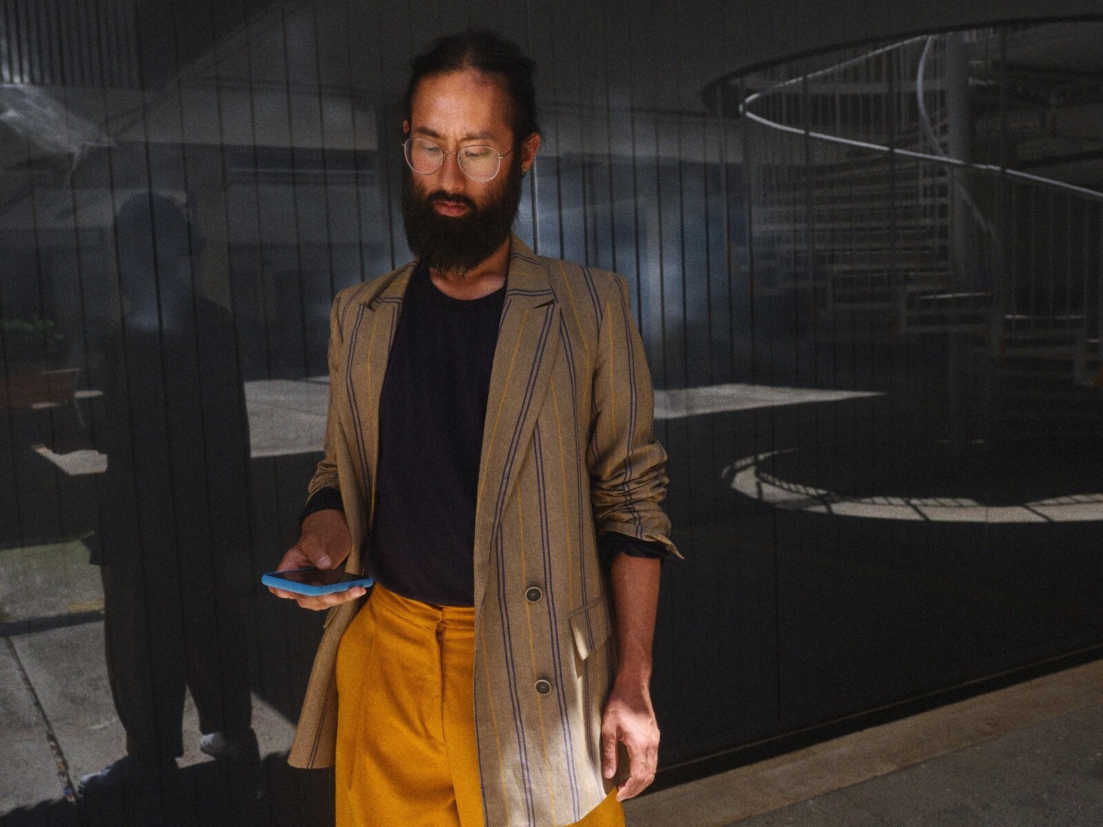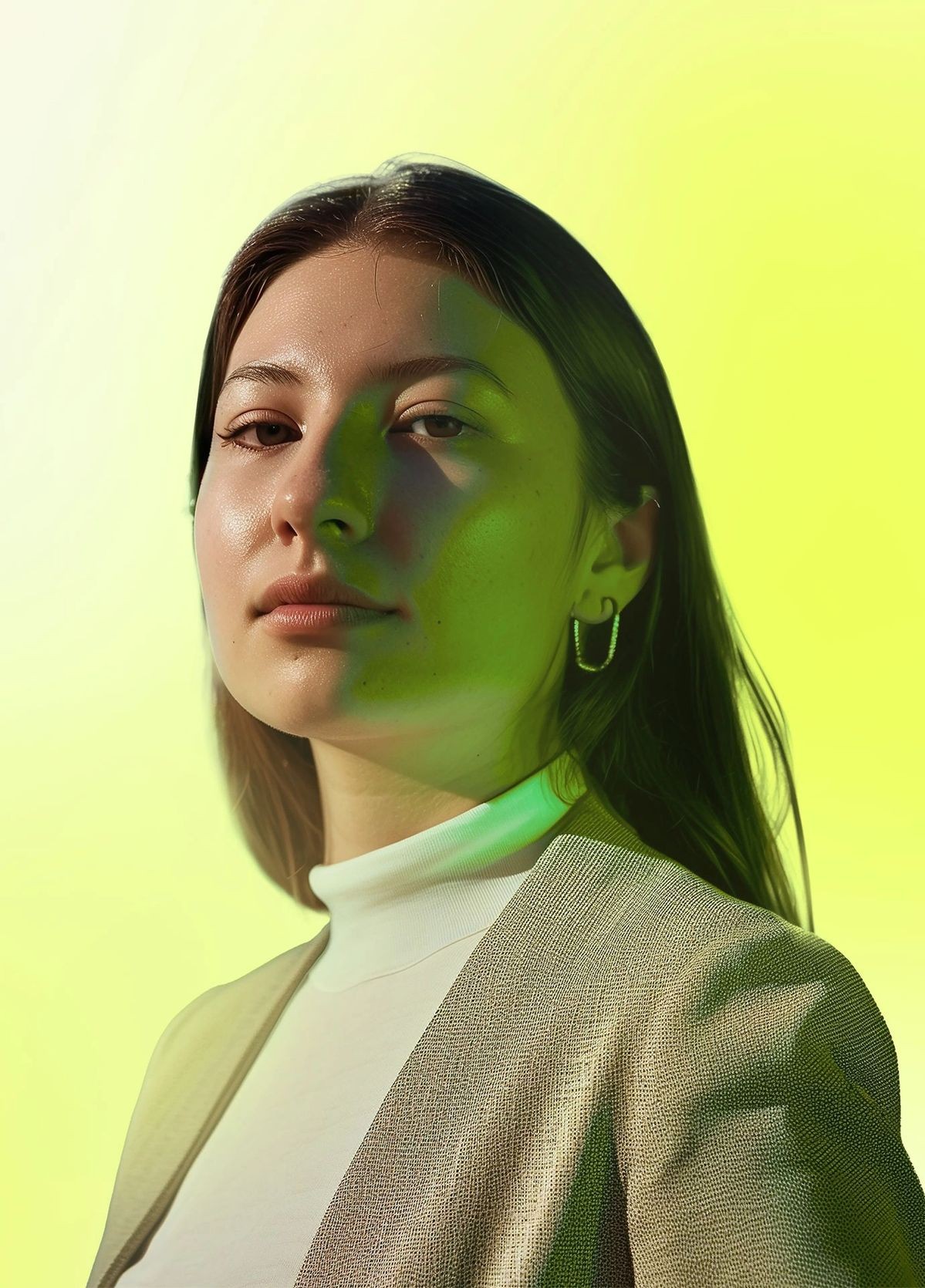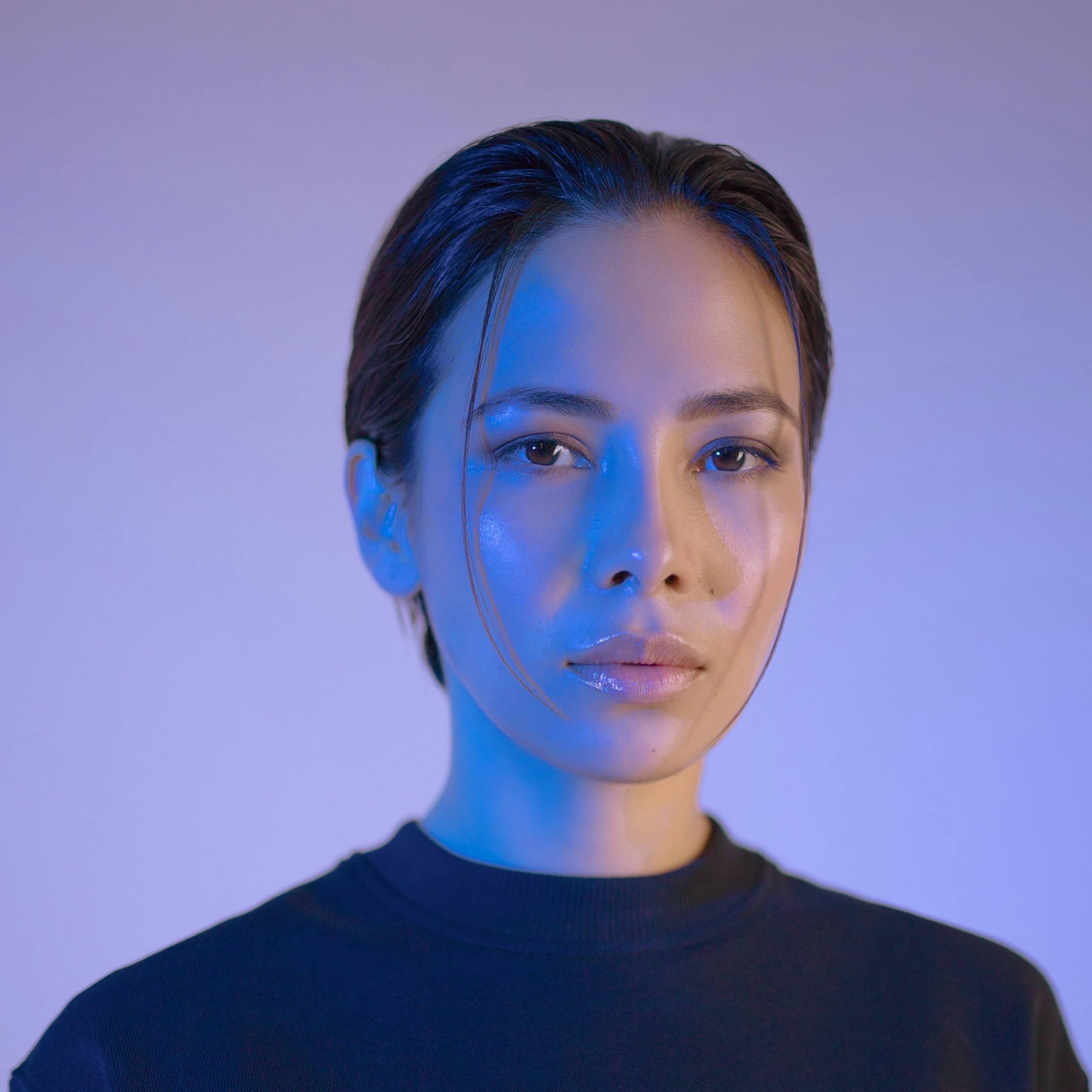 Photographic style A — studio surrounding / plane background / colored light from different angles / digital atmosphere